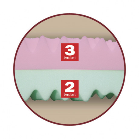 3. Matrace má z každé strany jinou tuhost, 2 a 3 a pouhým otočením ji přizpůsobíme pro naše tělo.
